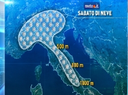 Quindi oggi prevalenza di tempo bello in Valle d’Aosta e Piemonte, molte nuvole invece sul resto d'Italia. Al mattino deboli nevicate fino in pianura su entroterra ligure, Lombardia orientale, Emilia, Veneto, Trentino e Alto Adige. Piogge sparse invece su Lazio, Molise e regioni meridionali, ma con neve sull'Appennino Centrale oltre 800-1000 metri. Nel pomeriggio neve mista a pioggia su Basso Veneto ed Emilia, piogge sparse al centro sud e Isole con neve fino a quote collinari sui rilievi del Centro. In serata ancora neve sull'Emilia e, a quote collinari, su regioni centrali e Sardegna.